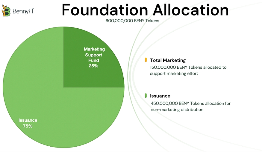 The BennyFi Foundation is the sole issuer of the BENY tokens. The BennyFi Foundation raises its annual budget through pools that distribute BENY tokens as a staking reward. The rate at which BennyFi Foundation pools are held determines the inflation rate of the BENY token.